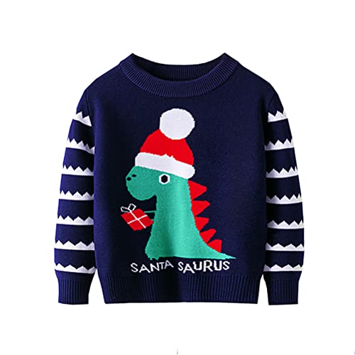 BABSUE Barn rund hals, jultröja för pojkar, jul, älg, dinosaurie, jultröja, koftor, vinter, långärmad tröja, tröja, Mörkblå dinosaurie, 5-6 År