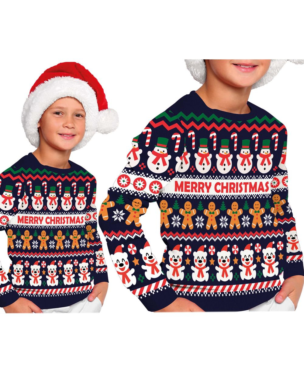 "Merry Christmas" Jultröja med Olika Julmotiv för Barn
