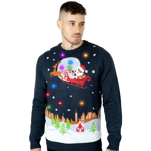 Freshhoodies Stickad unisex-tröja/jultröja med LED-lampor, fulsnygg dam- och herrtröja, för julfesten, S–2XL, L