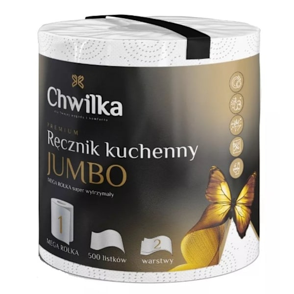CHWILKA Premium JUMBO pappershandduk 1 rulle 2 lager 500 ark slitstarkt absorberande