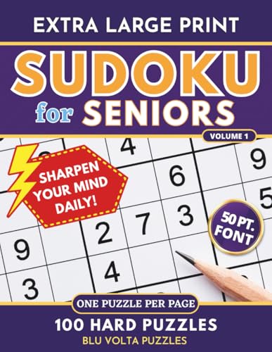 Extra Large Print Hard Sudoku for Seniors: 100 Easy-to-Read Brain-Challenging Puzzles for Adults & Elderly with Solutions in Jumbo 50pt Font, One Puzzle Per Page (Volume 1)
