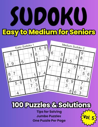 Sudoku Easy to Medium For Seniors-Volume 5: 100 Relaxing Puzzles with Solutions in a Jumbo Puzzle Book