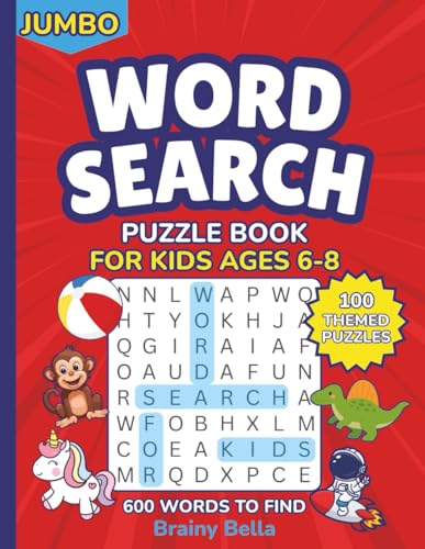 Jumbo Word Search Puzzle Book For Kids Ages 6-8: 100 Fun Themed Puzzles & 600 Words To Find for Boys & Girls in Kindergarten, First & Second Grades