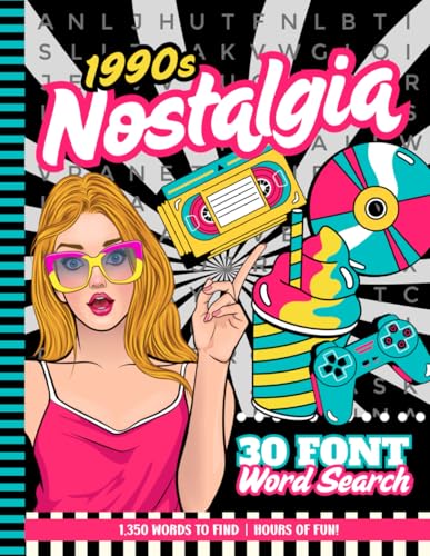 90s Word Search Puzzle Book For Adults: Hardcover / 1990s Nostalgia / 30 Font Size / Jumbo Letters - Easy To Read / 75 Nostalgic Themed Searches About The Nineties / 1,350 Terms You Can Find