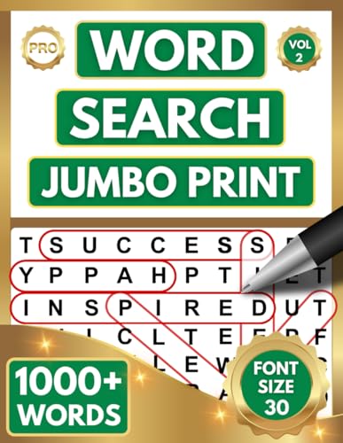 WORD SEARCH (JUMBO PRINT) PUZZLE BOOK FOR ADULTS & SENIORS: 1000+ EXTRA LARGE PRINT WORDS - (30 PT FONT SIZE) WORD FIND PUZZLES - VOL 2