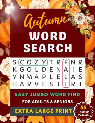 Extra Large Print Autumn Word Search: Jumbo Words Seek & Find Puzzle Book for Seniors & Adults, 55 Cozy Fall Themed Puzzles for Relaxation & Easy Stress Relief