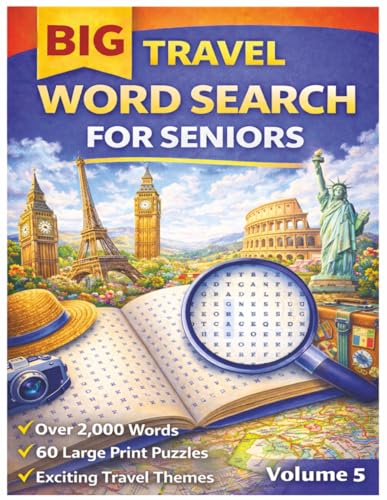 Travel Word Search for Seniors: Easy Large Print Jumbo Word Find Puzzle Book with 60 Relaxing Travel-Themed Puzzles | 8.5x11 inches, 120 pages | 60 ... Gift for Vacations. Holidays and Free Times