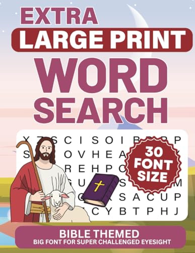 Extra Large Print Word Search: Jumbo Big Letters Puzzle Book for Seniors and Adults | Bible Themed with Interesting Facts & Solutions (Font size 30)