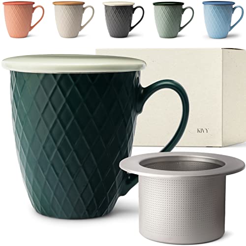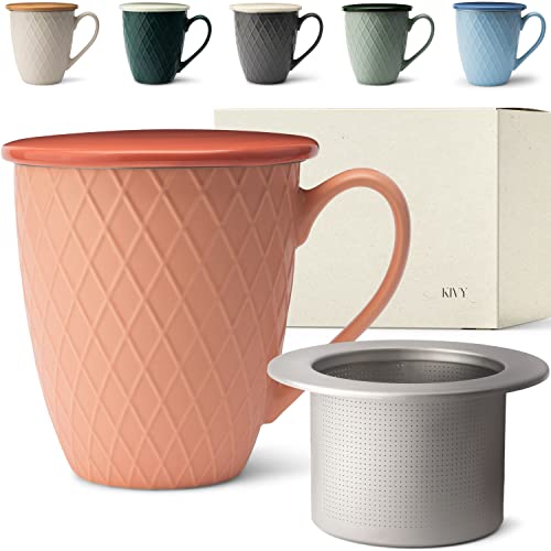 KIVY Stor tekopp med lock och sil – 650 ml – XXL kopp stor – tekopp med sil stor – jumbokopp – kopp med lock – stor temugg XXL – stor tekopp