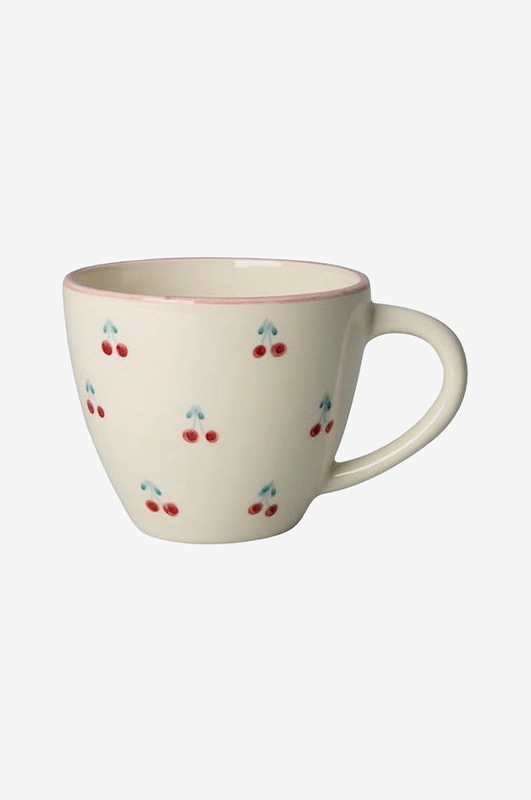 RICE - Keramik Jumbomugg med handmålade körsbär - 420 ml - Vit