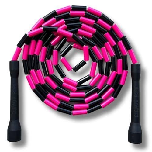 Elevate Beaded Jump Rope – Professionell hopprep med en justerbar längd upp till max. 3 mt, tjock 3 mm polycord/8 mm including beads, vikt 0,1 kg (rosa demon)