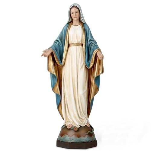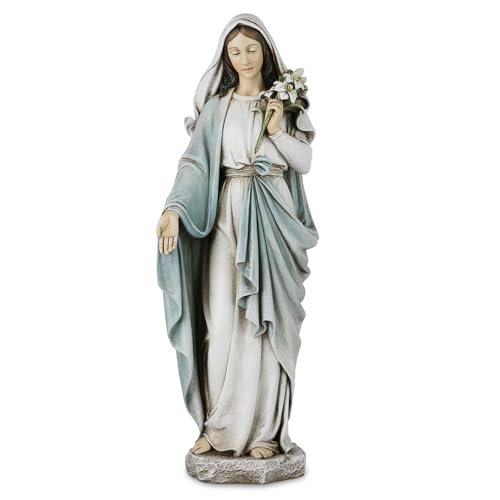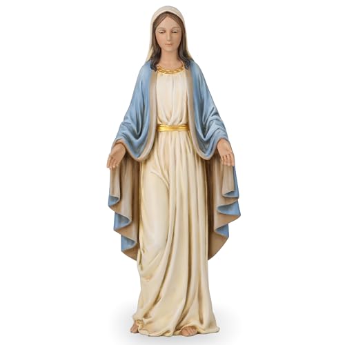 ShineOnAngel Our Lady of Grace-staty, 28 cm Jungfru Maria radbandshållare katolsk heminredning, handmålad välsignad mor statyer religiösa gåvor för kvinnor