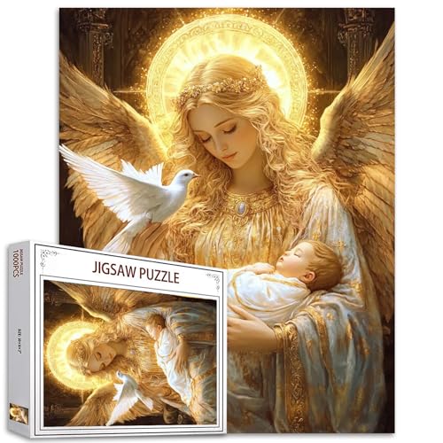 1000 Stycken Jungfru Maria Pussel för Vuxna - Kvinna Med Vingar och Baby - Kristendom Religioner Konst Väggdekoration - Gör-Det-Själv Gåvor - Utmanande Familjeaktivitet för Spelkvällar