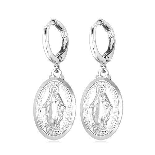 Jungfru Maria droppörhängen, present till kvinnor, oval form, guld/platina/roséguldpläterad, religiösa smycken kristet örhänge, Platina, Ingen sten