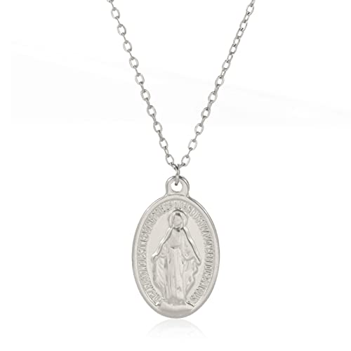 kkjoy mirakulös medalj Madonna hänge halsband rostfritt stål oval form jungfru Maria hänge halsband religiösa smycken nattvardsgång dop gåva, 45+5CM, Rostfritt stål, Ingen ädelsten
