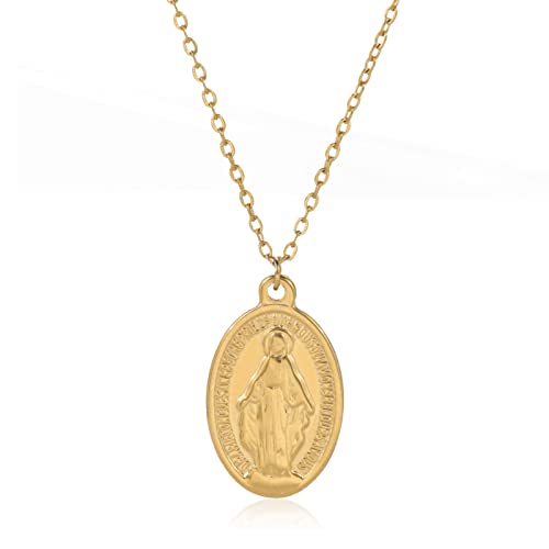 Happiness Boutique Kvinnor kors halsband med mynt i guldfärg | pärlhalsband jungfru Maria medaljong hänge
