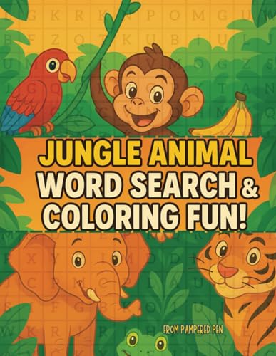 Jungle Animal Word Search & Coloring Fun!: Swing into Action with Puzzles, Fun Facts & Jungle Scenes to Color!