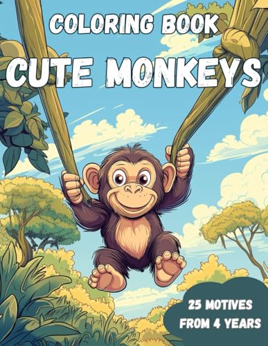 Coloring Book Cute Monkeys: Swing into coloring fun! Discover cheeky little monkeys climbing, jumping, and giggling through 25 joyful jungle scenes made just for young artists.