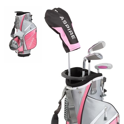 ASPIRE Junior Plus Complete Golf Club Set for Children, Kids - 5 Age Groups Boys and Girls - Right Hand, Real Girls Junior Golf Bag, Kids Golf Clubs Set