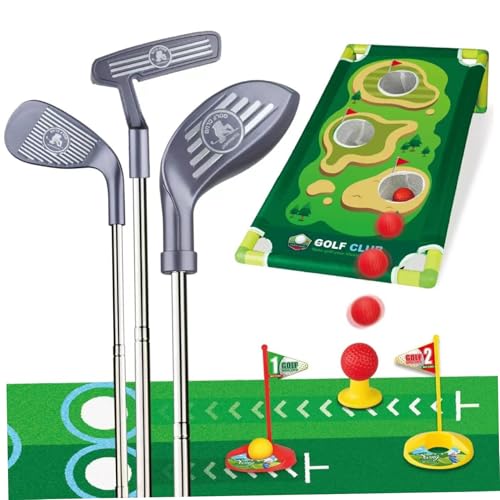 DeAO Golf Set leksak för barn inklusive golfputtmatta, 4 golfputter 60 cm, 6 golfbollar, småbarnsputtningsleksaker, inomhus, utomhusleksaker, födelsedagspresenter för pojkar flickor 3-4 5 6 år
