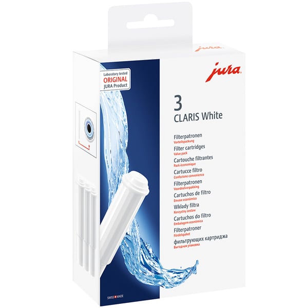 Comedes vattenfilter kompatibelt med Jura Claris White System (filter nr 68739, 60209 & 62911, kompatibelt med kaffemaskiner i Impressa- & Nespresso-serierna; 4 st)