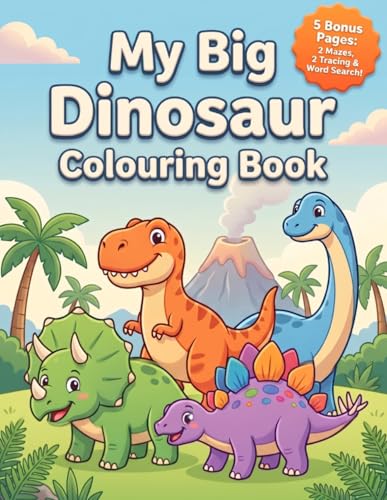 My Big Dinosaur Colouring Book: 40+ Colouring Pages for Kids Ages 4-8 with 5 Bonus Activity Pages like Mazes, Word Search, and Tracing. Single-Sided Illustrations with Jurassic Doodle Borders