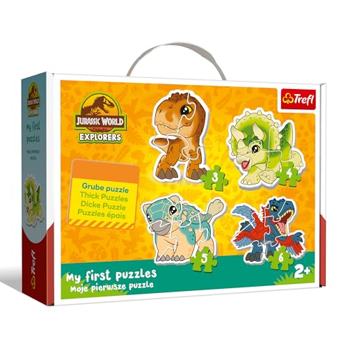 Trefl – Jurassic World, bedårande dinosaurier – 4 stora formpussel för småbarn, 2 till 5 bitar, för barn från 2 år
