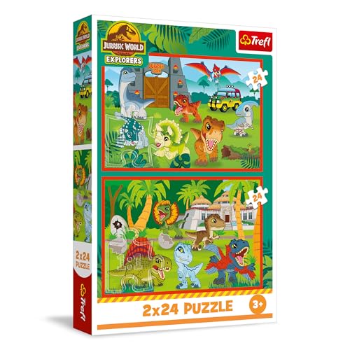 Trefl - Pussel 2-i-1: Jurassic World, Små dinosaurier - 2 x 24 bitar, Set med två pussel för barn från 3 år