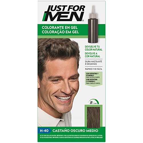 Just For Men Gelfärgning, hårfärg för män, täcker endast grått hår, återställer originalfärgen för ett naturligt utseende, medium mörkbrun, H40