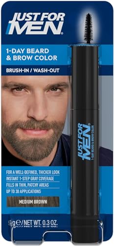 Just For Men Omedelbar retuschering för vita skägg och ögonbryn, tillfällig färg för en fylligare och definierad look upp till 30 applikationer, medium kastanj
