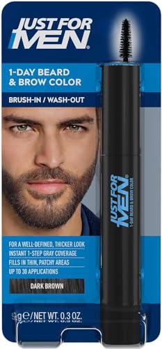 Just For Men Omedelbar retuschering för vita skägg och ögonbryn, tillfällig färg för en fylligare och definierad look upp till 30 applikationer, mörk kastanj