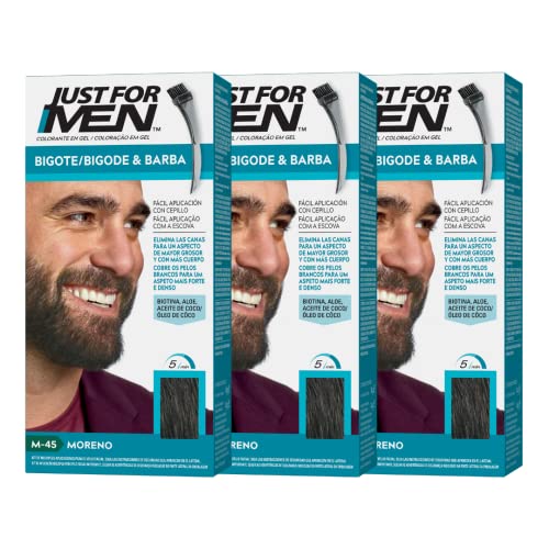 Just For Men Mustasch och skäggfärg eliminerar grått hår för tjockare och fylligare utseende, med applikatorborste ingår, brunett, M45 (3-pack)