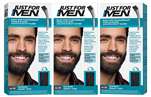 Just for Men Skägg och mustasch, skäggfärg herr svart färg, färgning, tar bort grått hår, med applikatorkam - M55 (3 förpackningar)