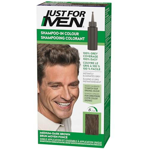 Just For Men Gelfärgning, hårfärg för män, täcker endast grått hår, återställer originalfärgen för ett naturligt utseende, medium mörkbrun, H40