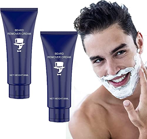 2 pcs Men Permanent Hair Beard Removal Cream Depilatory Paste Face,Natural Soft Painless Beard Remover Cream for Face, Underarms, Legs, Chest, Arms