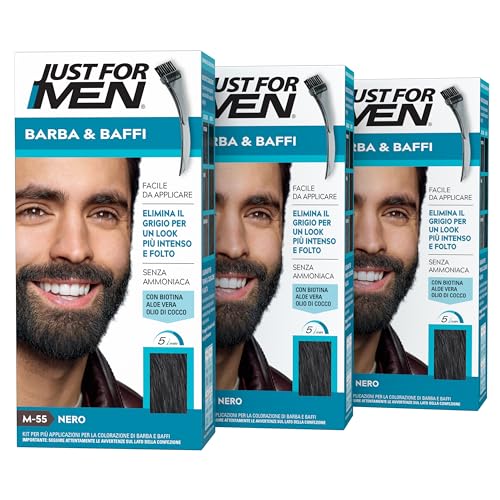 Just For Men Tint mustasch och svart skägg, eliminerar grått hår för ett tjockare och fylligare utseende, med applikatorborste ingår - M55 (3-pack)