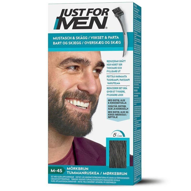 Just For Men Skägg och mustasch, skäggfärg för män, färgning utan ammoniak, avlägsnar grått hår, med applikatorkam, mörkbrun färg, M40