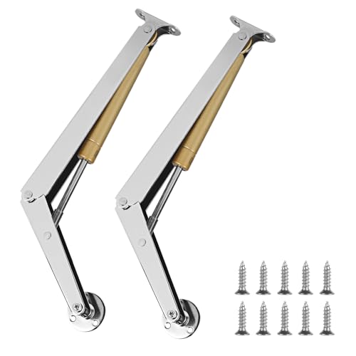 Lalago Lockhållare gångjärn 2 x 100N/PC, justerbar vinkel, robusta gasfjäder skåpgångjärn för trälåda, väggskåp, silver, borstad finish