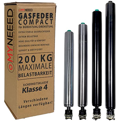 MYNEEED Gasfjäder, kontorsstol, reservdelar kompakt – reservgasfjäder upp till 200 kg för snurrstol, chefsfåtölj – steglöst justerbar höjd – TÜV & GS-testad, gasfjäder längd: 280 mm