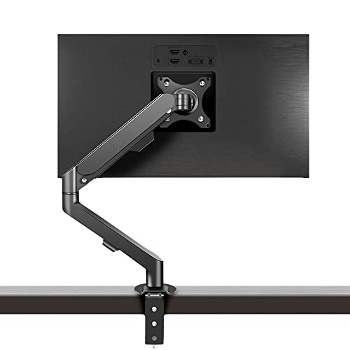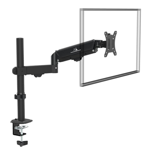 HILLPORT PC-skärmstativ enkel arm från 17 till 30" ergonomisk gasfjäder justerbar 360° roterande skrivbordsfäste lastkapacitet 2-9 kg VESA 75 x 75 mm och 100 x 100 mm M5B svart
