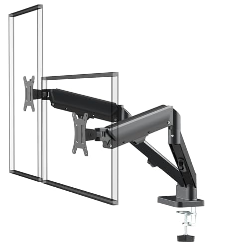 WALI Dubbel LCD-skärm helt justerbar gasfjäder väggmontering passar 2 skärmar VESA upp till 32 tum, 9 kg. Viktkapacitet per arm (GSWM002), svart, dubbla armar