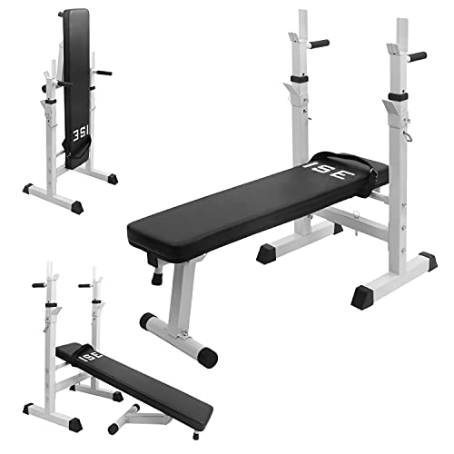 ISE Justerbar hopfällbar lyftbänk med stånghållare för hantel och dipstation, justerbara lyftbänkar, vit och svart
