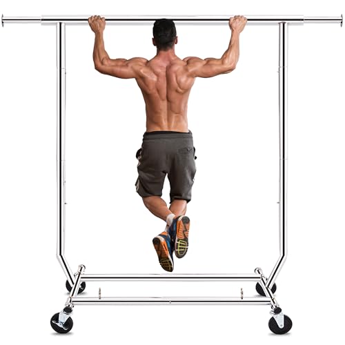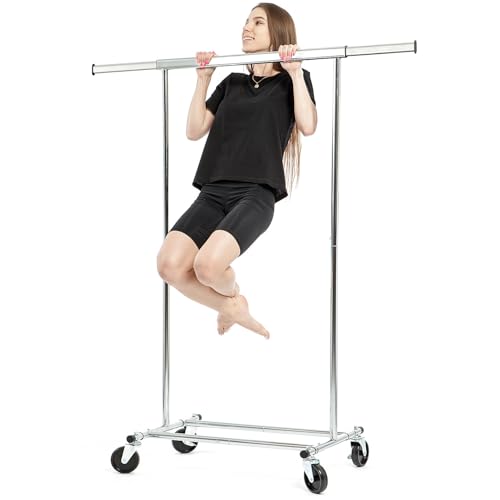 Tatkraft Urban Justerbar tålig klädstång med industriella låshjul, utdragbar från 36,6 till 55 tum, 100 kg kapacitet