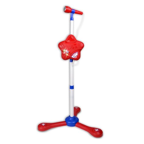 BONTEMPI - Trådlös mikrofon med justerbar stång för barn med ljuseffekter och fack för smartphone, mått 107x47x19 cm