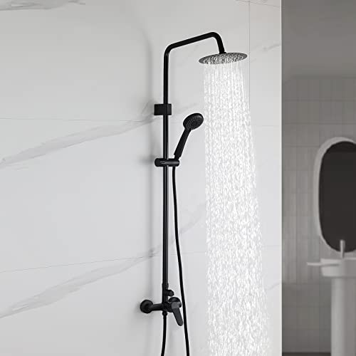Ibergrif M17059B duschsystem med reciator, duschhuvud, slang, justerbar stång och stativ, svart