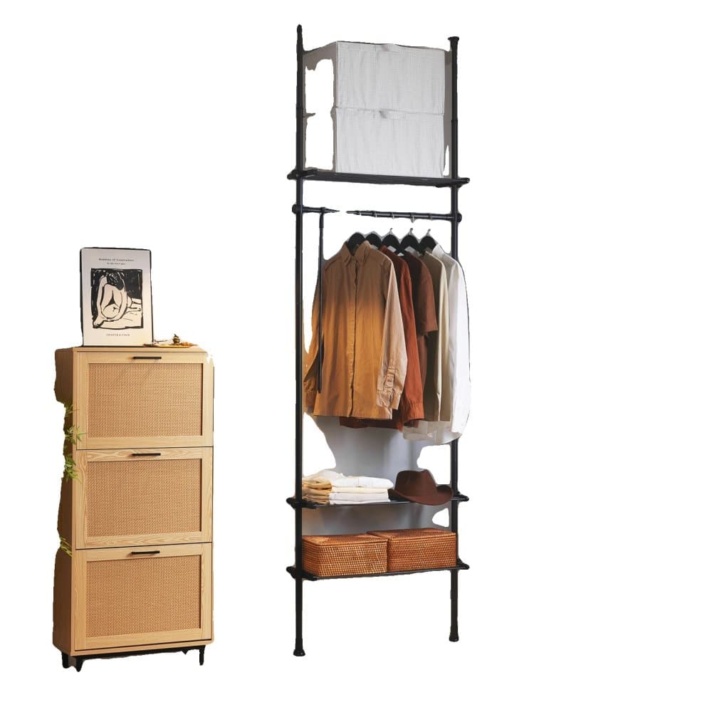 Garderobssystem, Justerbar stång, Flera hyllor,svart