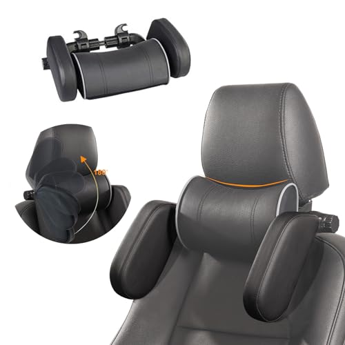 Todeco - Bil nackstöd, 180° justerbar bilnackkudde, sidoskalle och nackkuddar för bil, perfekt för bilresor, vuxna, barn, justerbar stång, svart, svart, 37,5 * 23 * 12 cm