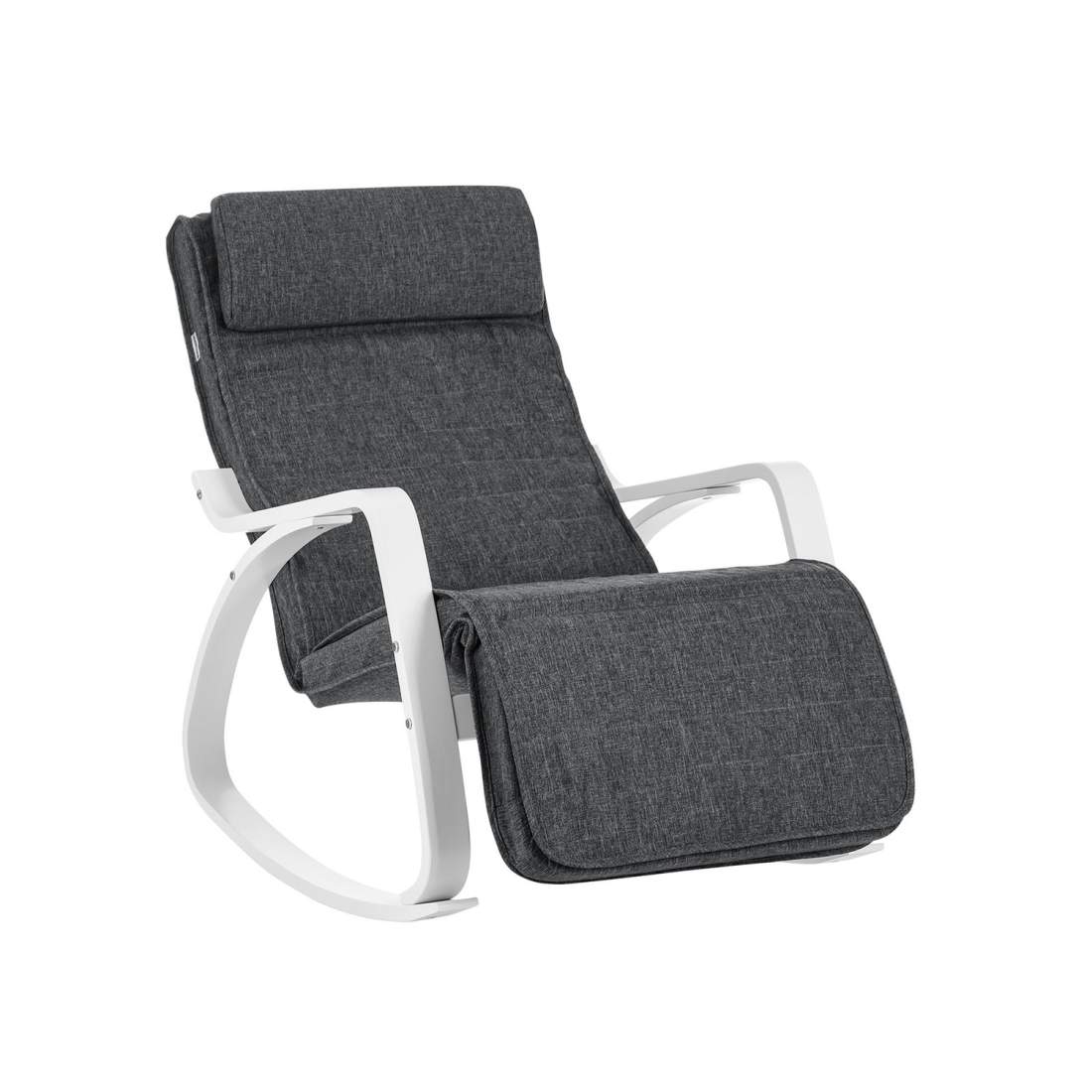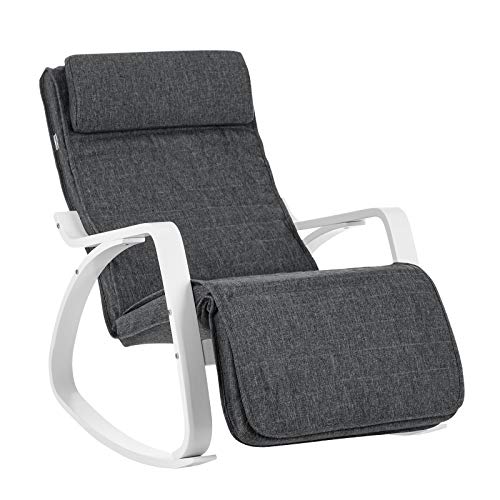 SONGMICS Gungstol i björkträ, gungstol, med 5-vinklar, justerbart fotstöd, imitation, linne, lastkapacitet 150 kg, vardagsrum, mörkgrå LYY011G01