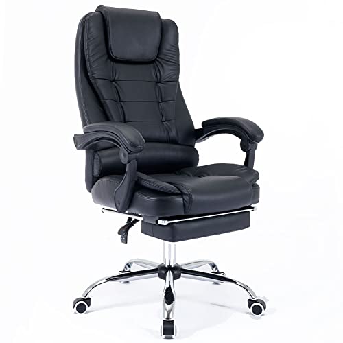 BAKAJI Skrivbordsfåtölj i eko-läder med justerbart ryggstöd och fotstöd, stålbas och 5 hjul 360 graders roterande hjul, kontorspresidentstol med justerbar höjd (svart)