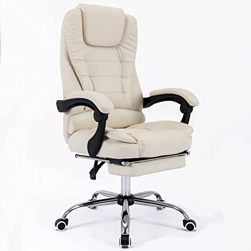 BAKAJI Skrivbordsfåtölj i eko-läder med justerbart ryggstöd och fotstöd, stålbas och 5 hjul 360 graders roterande hjul, kontorsstol med justerbar höjd (Kräm)